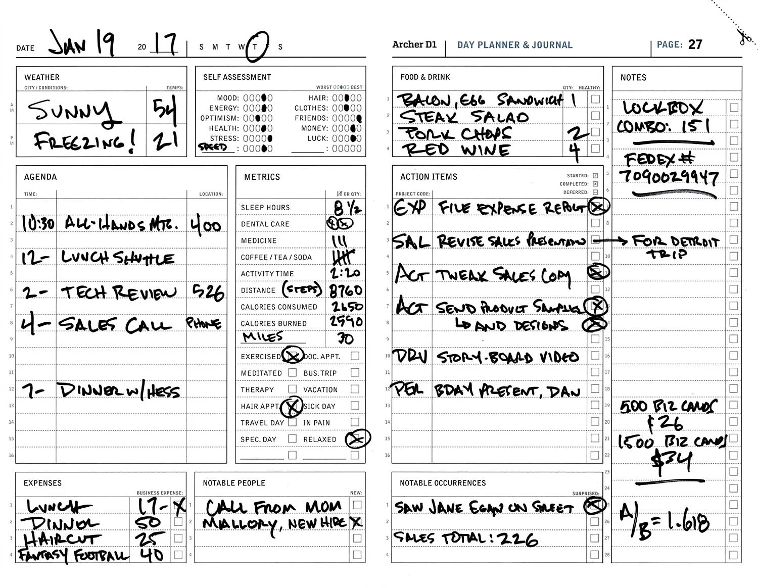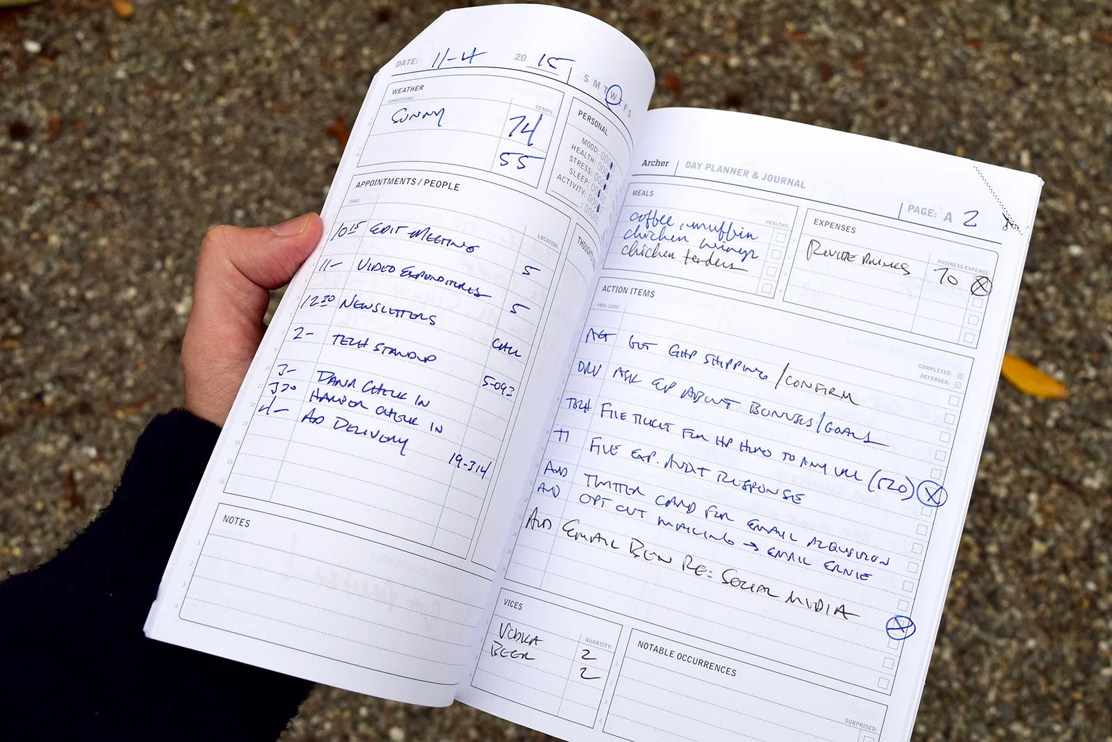 THE D1 ARCHER PLANNER'S DAILY TWO-PAGE SPREAD, IN ACTUAL USE